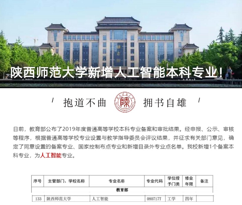 近日,教育部公布了2019年普通高等学校本科专业备案或审批结果,学院申报的“人工智能”本科专业获准设置。