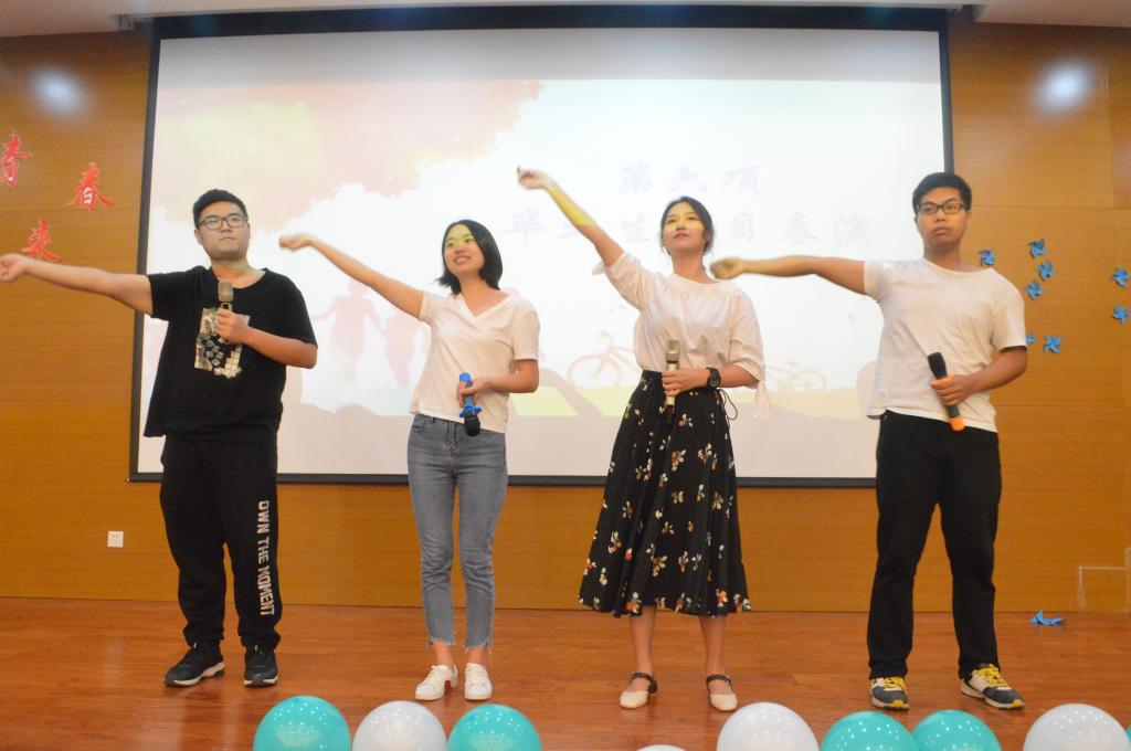 最后,2018届毕业生代表王静带领全体毕业生进行宣誓。欢送会的第一环节就此结束。欢送会的第二篇章是节目表演。歌曲串烧《梦想起航》唱出了大家对青春的无悔和对梦想的坚持,青春作伴,未来可期;诗朗诵《青葱岁月》带领大家回顾了四年来生活在师大的点点滴滴,传达了同学们对大学的留恋与不舍,将现场气氛推向高潮。最后,歌曲《最美的太阳》更是饱含同学们的激情与活力,表达出对未来无限憧憬和期待。随后进行的只言片语环节,将同学们未说完的话一一记录,送给最想送的人。最后,欢送会以师大特色“晚点名”结束,爱爱视频