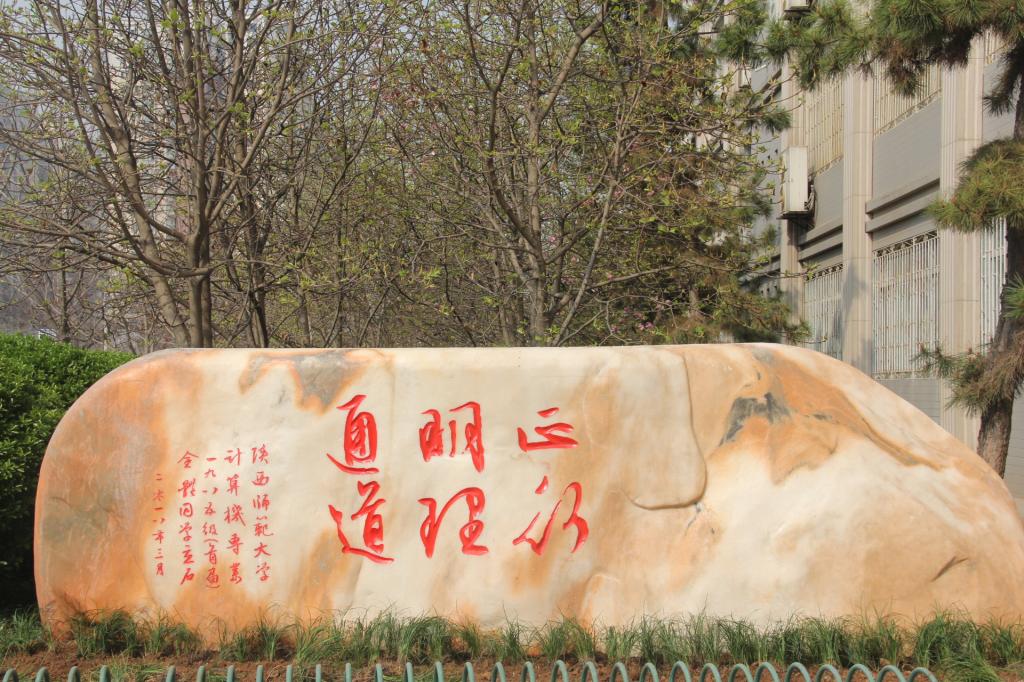 捐赠的院训石顺利安放在文津楼前面。