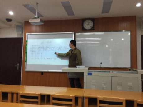 第七届青年教师教学基本功大赛第一名获得者胡曦明老师为大家传授经验。胡老师专门给团队的各位青年教师讲述了比赛准备过程中需要注意和重点准备的地方:教学内容的选择、教学设计、教学课件的设计、教学过程的演练、着装、语言表达、教学的实施以及其他细节。他给各位有意提高自己的教学水平、准备积极参加比赛的青年教师做了非常到位和精练的指点。