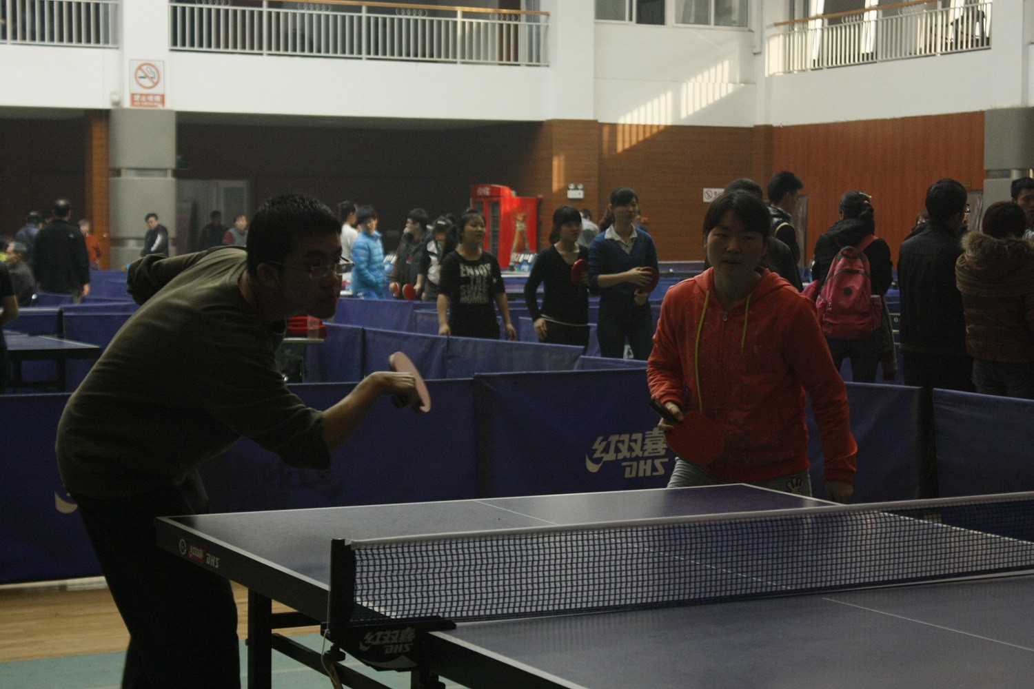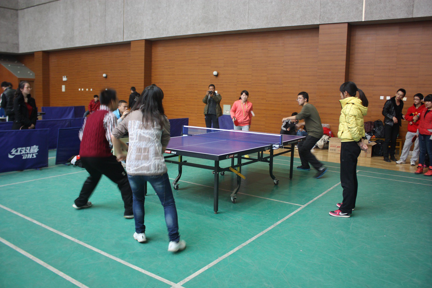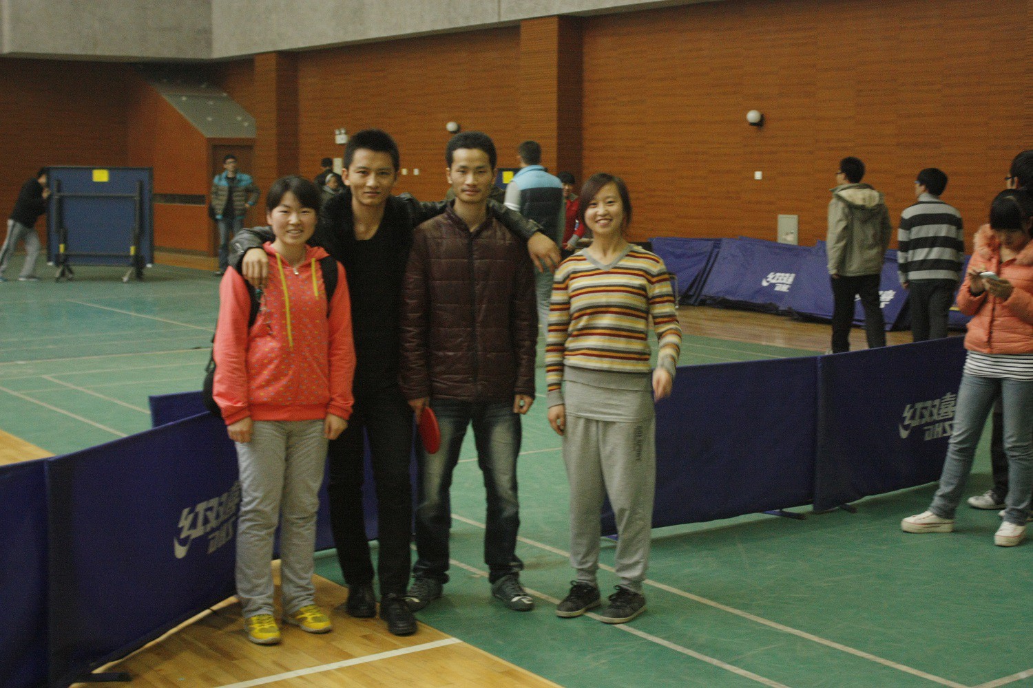 7日下午,精心备战了一周的乒乓球队员自信满满的登上了校车,相互鼓励着踏上了征途。决赛于1400在雁塔校区体育馆准时开始,按照事先的战略部署,队员们先后上场,从容应对强劲的对手。队长在参加比赛的同时细心敏锐的观察着对手战术,在对手排山倒海的攻势下,依然有条不紊地随机应对。队员们在赛场上竭尽全力,努力拼搏,精诚合作,在紧张激烈的比赛氛围中依旧发挥自如,赢得场上观众一阵接一阵的热烈掌声。在队员们顽强拼搏下最终取得了本校2013年度大学生乒乓球团体赛的季军。