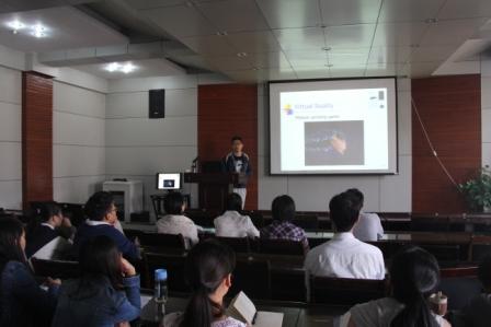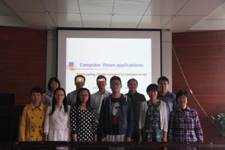 学术报告厅开展学术活动。本次活动分为两个部分。首先由团队成员裴炤博士做题为“Computer Vision Applications : From using single camera to camera array ”的学术报告。接着,就如何提高2016年国家自然科学基金项目申请成功率进行经验交流及工作安排。本次活动由智能视觉计算团队负责人汪西莉教授主持,团队多位教师和各年级博、硕士研究生参与了本次活动。