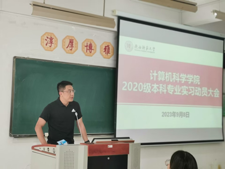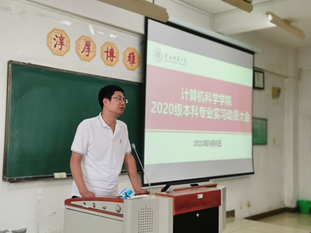 实习带队教师代表王涛希望同学们珍惜实习机会,遵守实习纪律,提升动手能力和团队协作能力;班主任王亮强调了专业实习的重要性,并梳理了20级学生本科毕业前需要完成的学习任务;软通动力科技有限公司负责人詹攀介绍了企业情况,明确了实习目标、任务内容以及实习要求等;教学秘书杨婷向同学们讲解了填写实习簿的注意事项。教学副院长李鹏作动员讲话,重申了专业实习在本科人才培养中的重要地位,并要求同学们处理好实习与毕业论文、考研、就业等的关系,既重视实习效果,又要注意个人安全,通过实习训练环节有效提高学生动手实践能力。