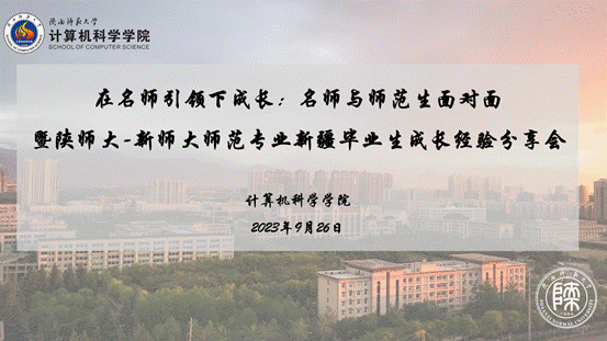 于2023年9月26日在陕师大长安校区文津楼3425报告厅以及腾讯会议举办了“在名师引领下成长:名师与师范生面对面暨陕师大-新师大师范专业新疆毕业生成长经验分享会”的混合线上线下学术报告与经验交流活动。