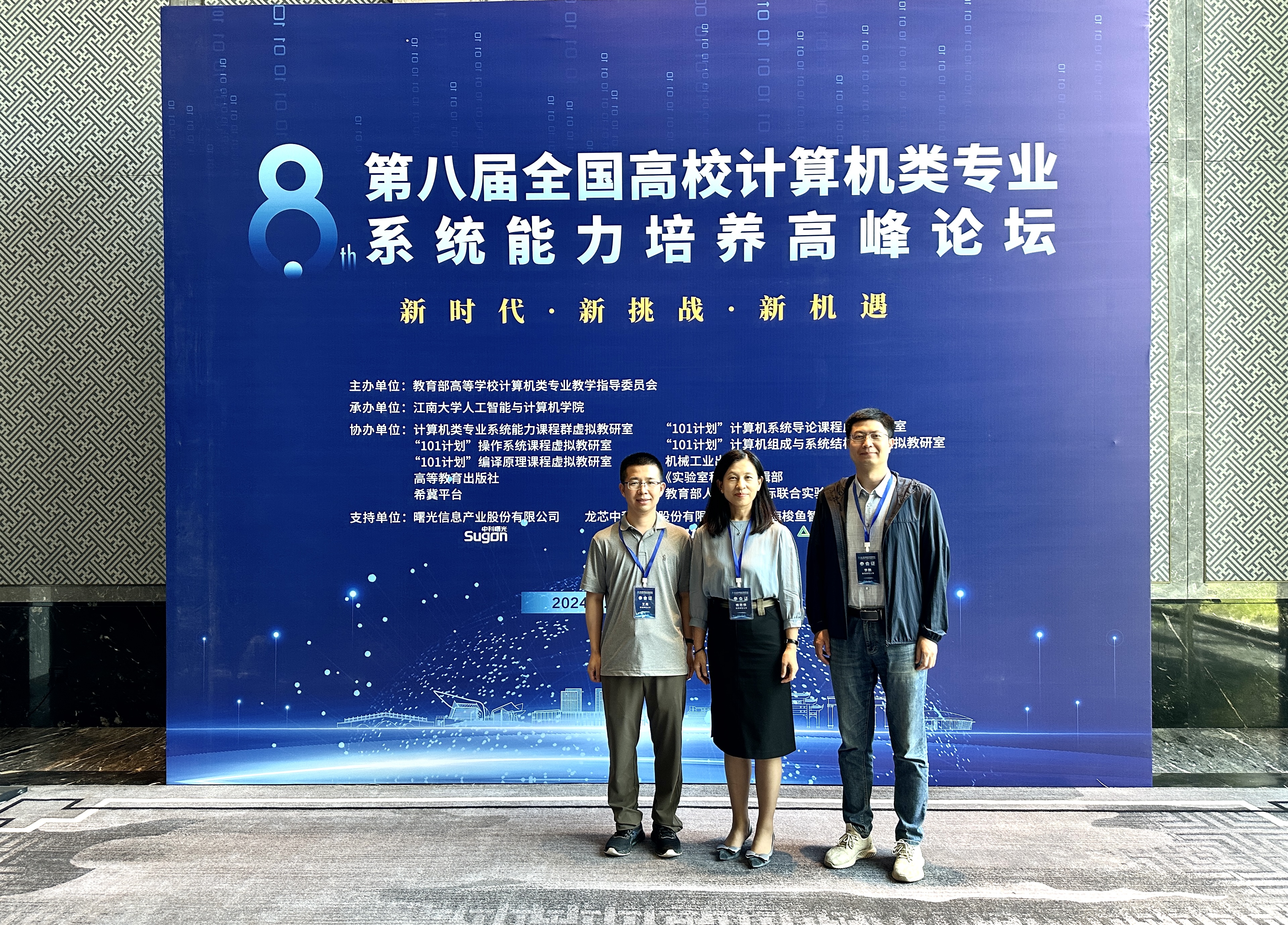 2024年5月18日,第八届全国高校计算机类专业系统能力培养高峰论坛在无锡召开,姚若侠院长、李鹏副院长、计算机科学与技术(创新实验班)专业负责人王亮副教授参会。