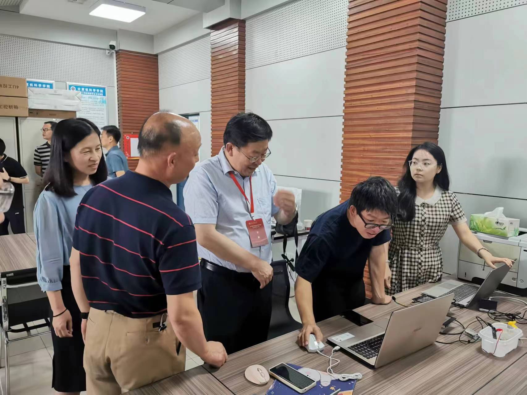 专家组一行还参观了学院人工智能实验室、秦岭创客工作室等,并抽查了学位论文、试卷等教育教学过程资料。