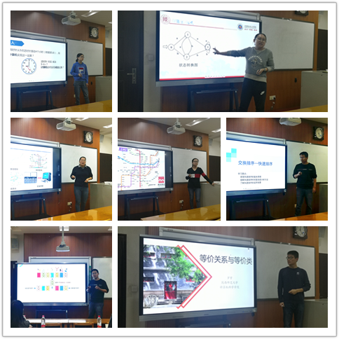 第二组青年教师分别以《第二重要极限》、《随机多址接入协议》、《不能忘记的中国计算机发展历程》等题目进行讲解。其中宋云老师的讲授,通过连续复利的事例和视频演示,生动形象地讲解了无理数e的由来和第二重要极限,最后通过“数学之美”来升华主题,获得了大家的好评。朱昀老师将历史与计算机相融合,结合爱爱视频