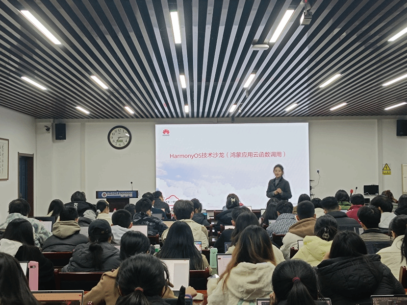 3425报告厅为2022级计算机科学与技术(创新实验班)及软件工程专业学生举办了一场华为云Harmony OS应用开发技术培训沙龙。本次活动由学院软件工程课程群团队负责人李志强和2022级辅导员田海东具体组织,由华为技术有限公司客户经理唐凯辉、鸿蒙技术讲师任奕燃主讲培训,共吸引了50余名学生积极参与。