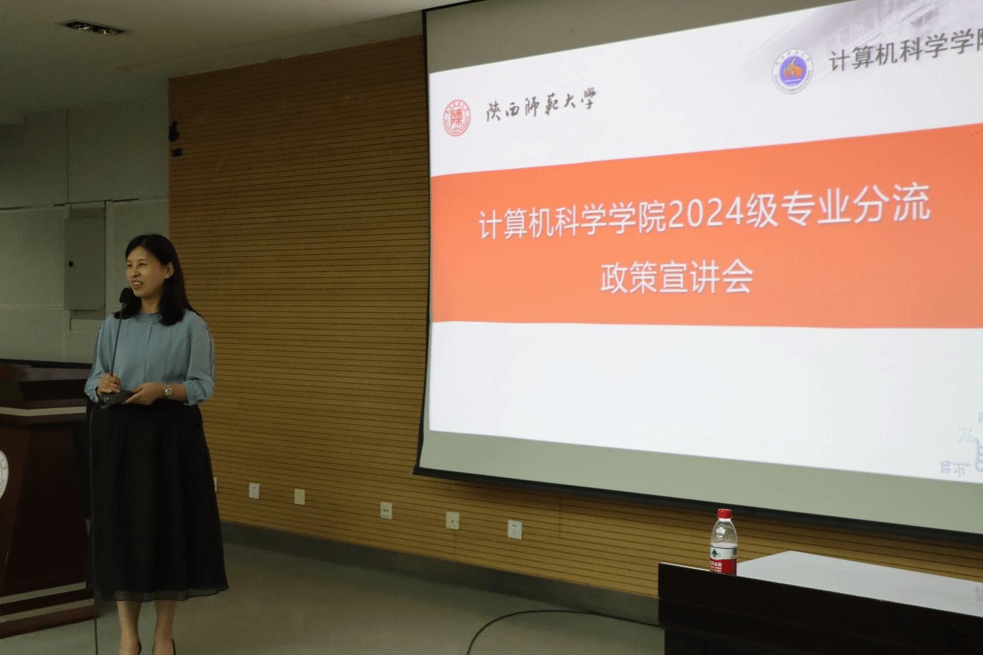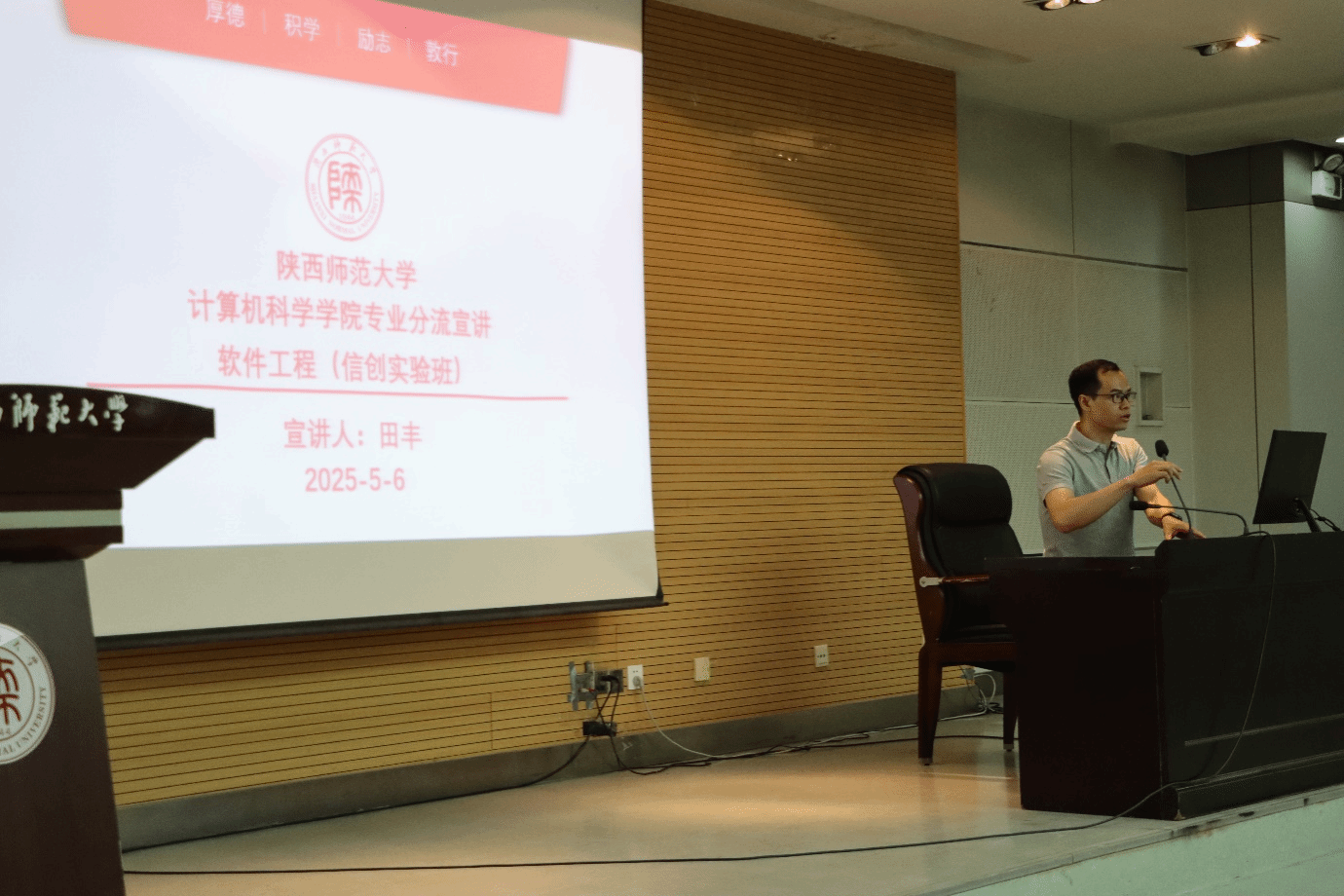 于2025年5月6日晚在雁塔校区崇鋈楼三层归仁堂报告厅,举行了2024级本科生专业分流政策解读及专业宣讲大会,学院姚若侠院长、李鹏副院长、洪灵、田丰、陈昱莅等专业负责人、教学秘书朱炜、辅导员张皓然等老师以及2024级院内全体本科生、部分院外学生参加了会议。