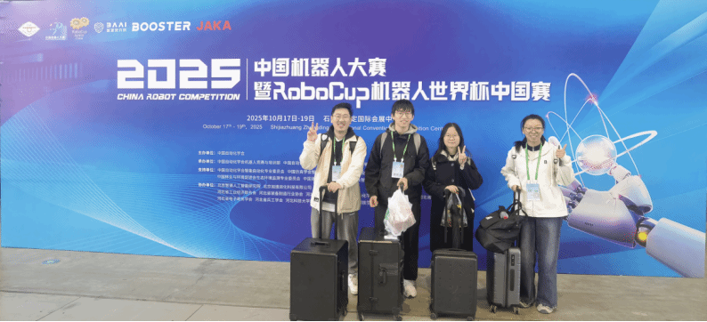 人工智能与计算机学院本科生田铠源、高子皓、马紫晨、唐花根、严天宇同学在学院多位教师指导下组队参加机器人学科竞赛,在2025年第八届中国高校智能机器人创意大赛中,获得全国一等奖1项,获得大区赛一等奖1项;在2025年中国机器人大赛暨RoboCup机器人世界杯中国赛中,获得全国一等奖1项、全国二等奖1项、大区赛一等奖1项。