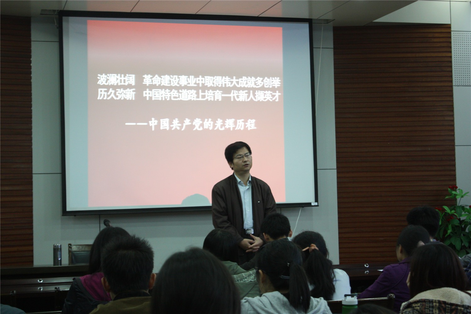 第二十一期党课培训的帷幕。在同学们的殷切期待中,胡波老师开始了以“党的光辉历程”为主题的精彩报告,并将这一主题分为三个部分进行了详细讲解。首先,胡老师以为什么要学习党的光辉历程和同学们进行了交流,使同学们认识到了学习党的光辉历程的重要性。随后,胡老师带领我们一起回忆了中国共产党的光辉历程,讲述了优秀共产党员的先进事迹,使同学们对他们产生了崇高的敬意,也深深的激起了同学们的爱国情怀。接着胡老师通过分享在战争时期三位爱国青年的家书,以此来激励同学们在学校能够认真学习、不断提高,今后为党、国家和人民作出贡献,并在今后的工作中能立足本岗、尽职尽责。最后胡老师向同学们送上美好祝福。本次培训讲座在同学们的热烈掌声中落下帷幕。 通过本次党课的学习,使同学们对党的光辉历程及党的先进性有了更加深刻的理解,提高了同学们的思想感悟,激发了同学们的爱国情怀,同时,为同学们争取早日加入中国共产党,成为一名光荣的共产党员打下了良好的基础。 |