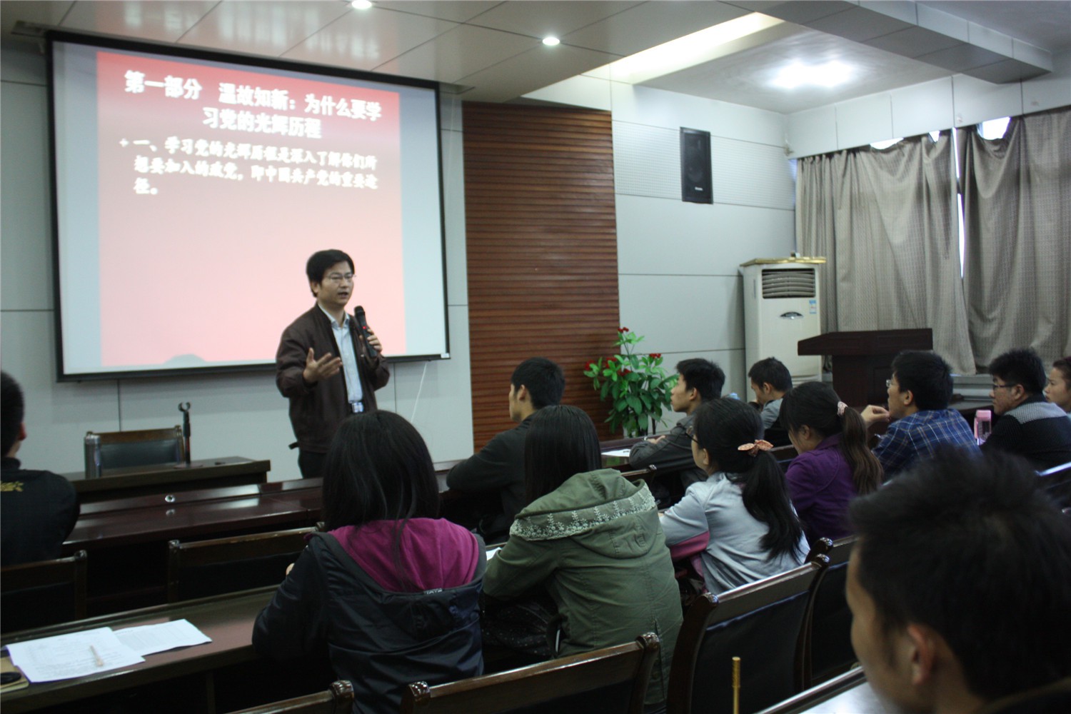 党委书记胡波老师应邀担任此次党课培训讲座第一场的主讲,团委书记胡雯洁老师主持了本次培训班的开学典礼,全院七十余名学员到场参加了此次培训。 会议伊始,胡雯洁老师就党课培训课程的基本安排及会场纪律做了简短的介绍,至此,拉开了爱爱视频