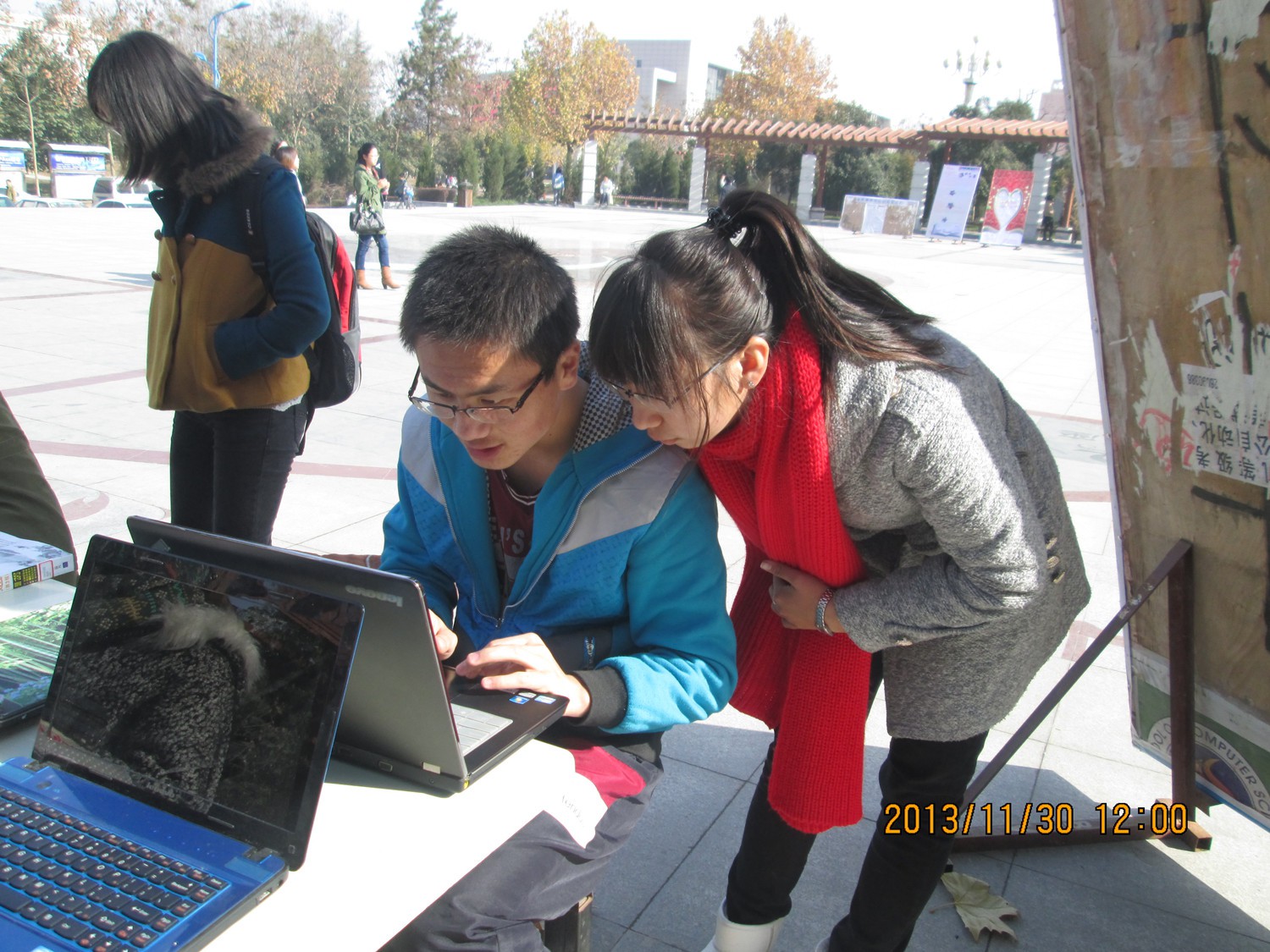 第20期党课11级的实践小组在阳光苑的广场上开展了“电脑诊断室”的电脑义务维修活动。本次活动由胡雯洁老师和李勇俊老师指导,樊迪同学负责。小组32人全部参加了此次活动,旨在利用专业知识帮助全校同学解决一些电脑故障,解答一些计算机方面的疑惑与难题。