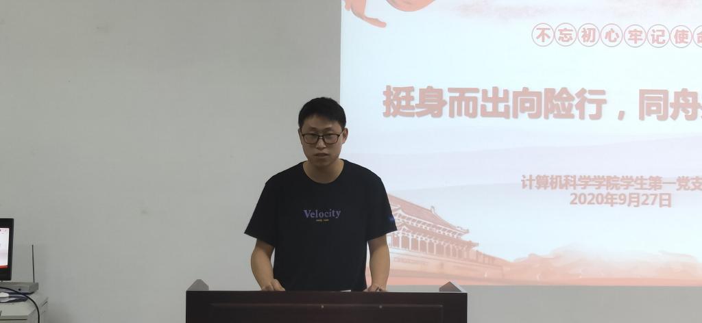 学生第一党支部于9月27日晚19:30在文津楼3412报告厅举行了“挺身而出向险行,同舟共济报家国”主题学习活动。本次活动由支部书记陈应权同志主持,支部全体成员参加。