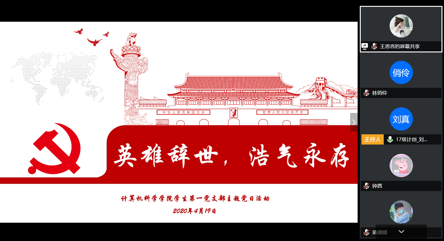 学生第一党支部于4月19日上午10时举行了“英雄辞世,浩气永存”主题党日活动。我校资助管理中心主任王楠老师、学生第一党支部书记陈应权老师和支部全体同志参加了本次活动,本次活动由第一党小组组长刘真同志主持。
