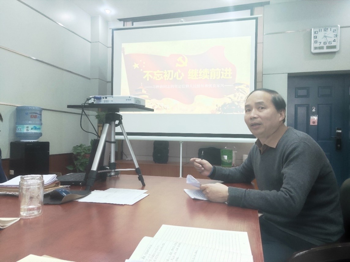 民主评议活动结束后,学院党委书记黄怀平同志作了题为《不忘初心,继续前进——习仲勋同志坚定信仰人民情怀和优良家风》的党课,党课内容丰富详实,细节感人。黄怀平同志首先从习仲勋的家世讲起,15岁双亲相继而亡、3次入狱,艰难困苦的生活也未曾动摇坚定的信仰;他有坚强的党性原则:敢于说真话,敢于坚持真理,敢叫板领导,无论是主席或是自己;他品德高尚:曾经谦让中宣部部长一职,推让过副总理职务;他情怀真挚:热爱妻子儿女、热爱战友、三哭总理、三哭家乡、保护西安城墙、热爱人民;他家风严格,对待子女不留私情……一个个真实的故事,感人至深的革命情怀,令在座的同志们对老一辈革命家的高风亮节、家国情怀肃然起敬、钦佩不已。最后,黄怀平同志带领大家总结出三点启示:信仰的力量是不可战胜的;人民情怀是共产党人最博大的情怀;党员领导干部要有好的家风。