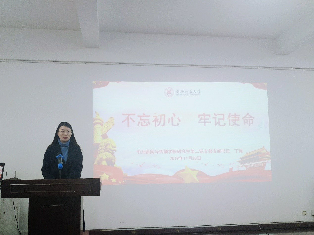 学生第三党支部在文津楼3412教室开展了“不忘初心,牢记使命”主题教育学习,本次学习邀请到新闻与传播学院研究生第二党支部书记丁佩同志讲授党课,支部全体党员参加了本次活动,活动由支部书记任仰主持。