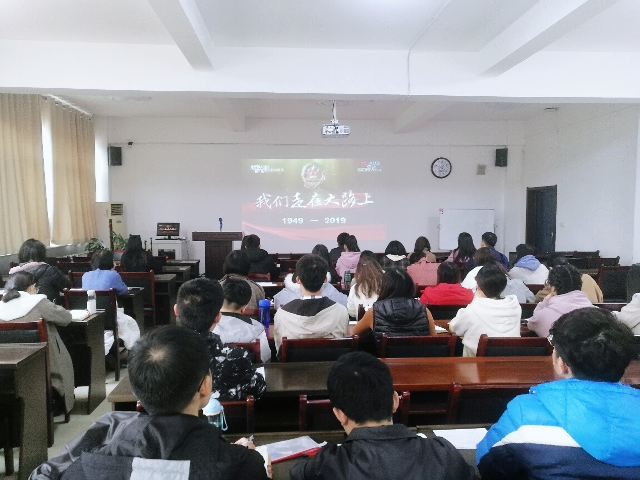 丁佩同志围绕中国共产党人在治国过程中不断探索的历程等方面展开了本次宣讲,她提到我党凝心聚力攻坚进行了一带一路、教育改革、精准扶贫、全面小康、科技创新等重大工程,作为90后的我们要有抱负,有职责,有担当,坚守信仰,奉献社会。随后,大家一起观看了大型文献专题片《我们走在大路上》第一集新中国的诞生,支部成员认真观看,书写心得笔记,感受曾经的艰难历程和辉煌时刻。
