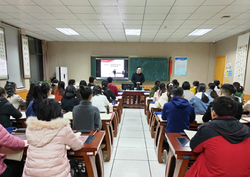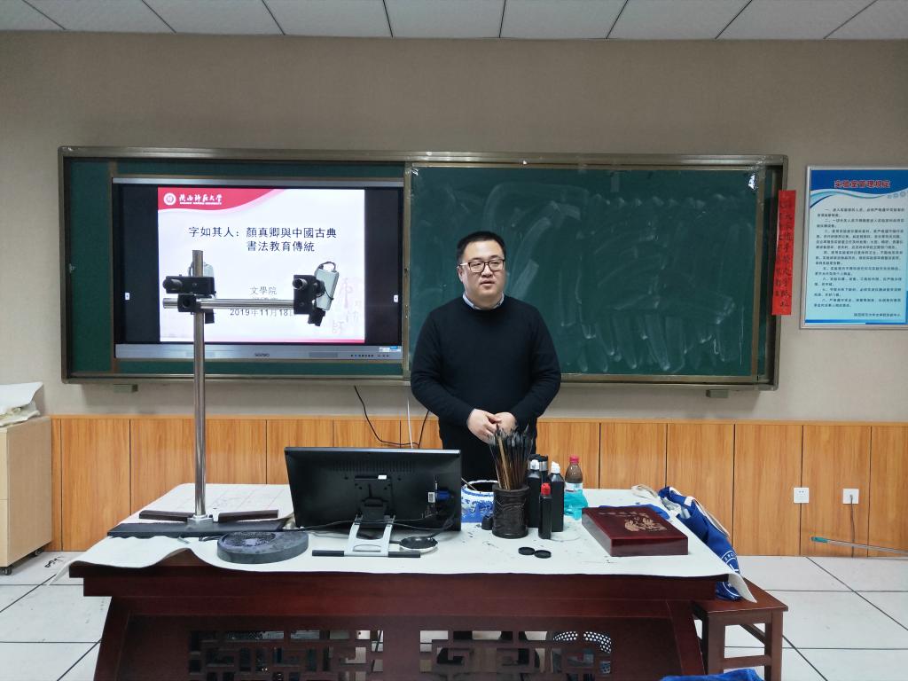 文学院教师、砚友书画社指导老师杨国庆开展了“字如其人:颜真卿与中国古典书法教育传统”书法培训。学院部分公费师范生、第二期“翰墨书香”书法班50余名学子参加培训。本次培训由学院党委秘书、团委书记郭康凌主持。