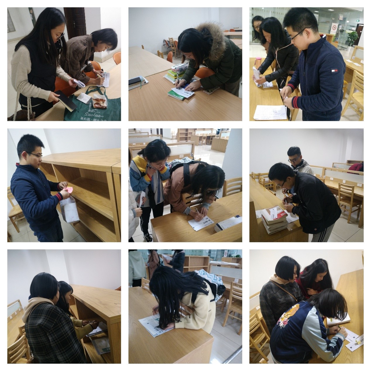 2019年11月17日晚,支部在校长安校区图书馆组织了整理图书志愿服务,对图书馆负一层中同学们的私人物品、图书馆书籍以及垃圾杂物等进行收纳整理,并用纸条对每样书籍物品进行了物品描述和方位标注,以方便同学们认领。在图管会志愿者的带领下,支部党员认真有序地进行本次图书整理工作。