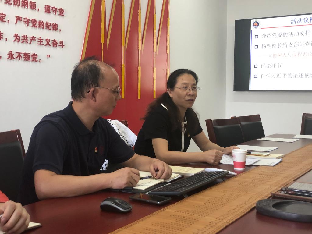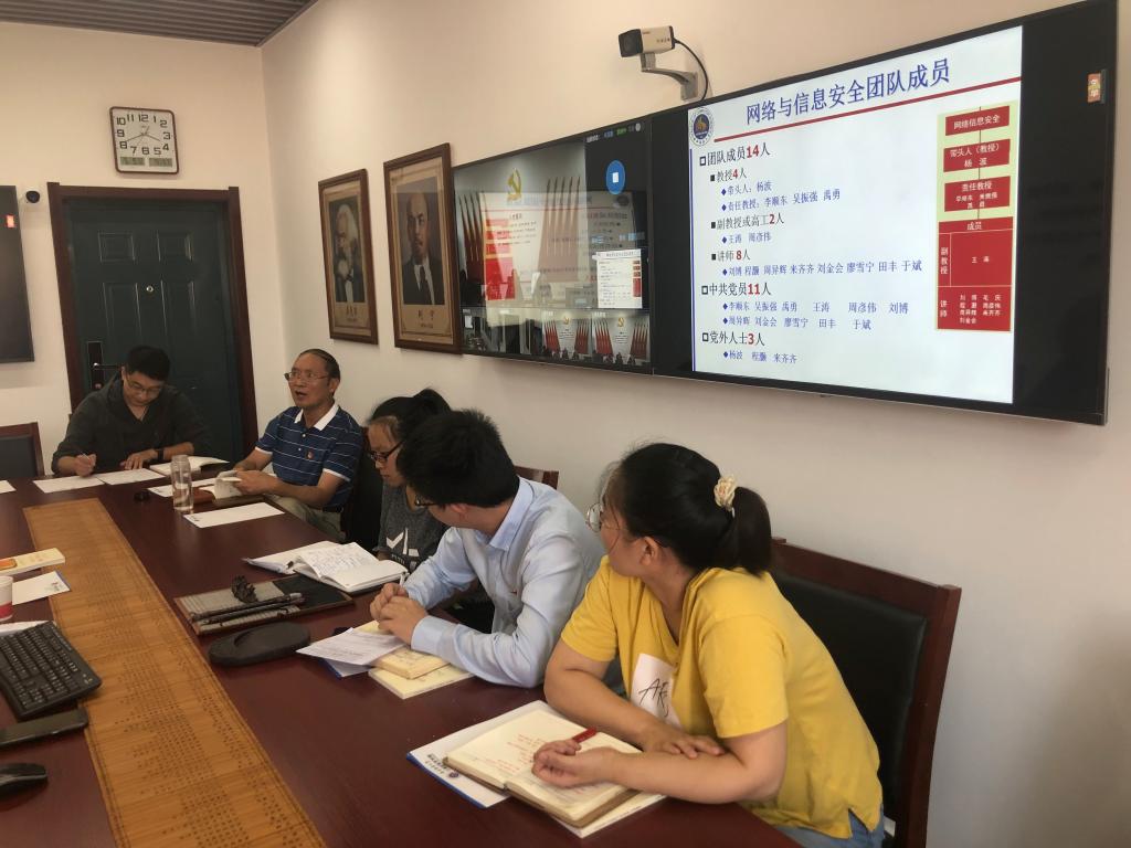 吴振强教授介绍了网络与信息安全支部的基本情况。杨祖培副校长为支部党员讲授了党课,她从课程思政的概念谈起,希望全体专业课教师“种好个人田,与思政教师同向而行,产生良好的协同效应”。她特别强调,专业课教师因其特有的专业知识和学术地位往往更能获得学生的尊敬和认同,能更好地将专业知识与立德树人融入到课程中,从而达到润物细无声的效果。杨校长鼓励青年教师要接好老教师手中的接力棒,努力提高自身的专业能力,勇于担当、身体力行,上好开学的第一堂课,对学生严格要求,加强管理,树立学生的专业自信。