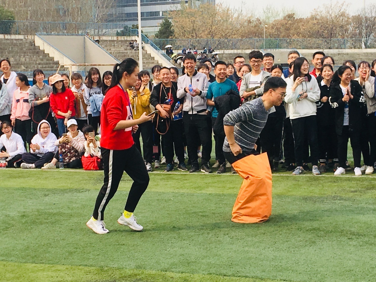 今年春季运动会的另一大亮点是研究生以及教职工团队的参与。教职工团队主要参了袋鼠跳、足球接力、跳绳、篮球掷准、滚雪球以及飞盘掷远比赛。教职工们精神抖擞,充分发扬顽强拼搏、团结合作的精神,此起彼伏的掌声和欢呼声充满整个田径场。趣味运动会以其趣味性、娱乐性和广泛参与性,一直受到学院教职工的喜爱,营造了学院健康向上的校园文化氛围,增强了教职工凝聚力。