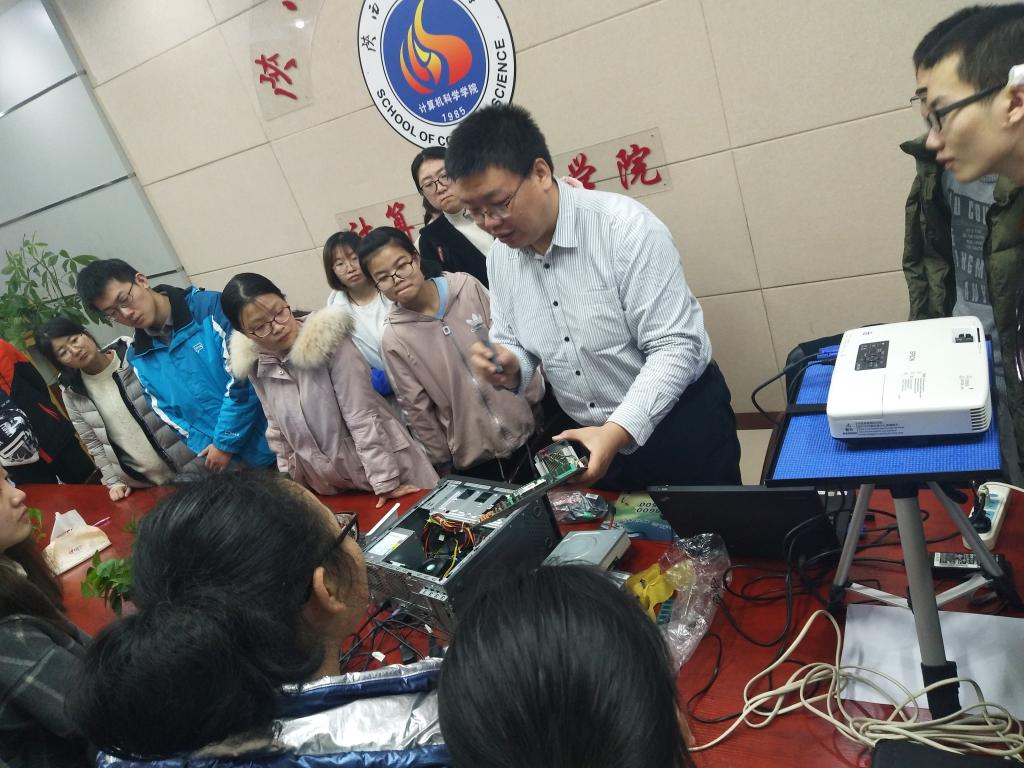 3月4日晚,蓝精灵全体队员在文津楼3431会议室召开学期工作例会,讨论本学期工作计划、培训计划。队长亢冠雄对服务队培训计划、工作要求等进行了介绍,并向队员们通报了纳新安排与面试情况。郭康凌老师对次日要开展的学雷锋活动进行了具体的介绍与安排,从服务内容、交往礼仪、携带物品等方面进行了详细的指导。随后,学院副院长董春生为全体队员开展了“硬件组装与维护”主题业务培训,并针对性地就3月5日赴爱爱视频