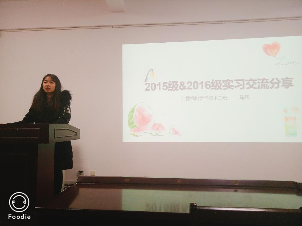 2016级计算机科学与技术(免师)一班与二班一同于学院报告厅举办了教育实习主题班会。全体学生参加了此次班会。出席此次班会的还有2015级三位优秀实习生高一华、马燕、黄娅倩和2016级计科专业班主任郝飞老师。此次班会由郝飞老师主持。