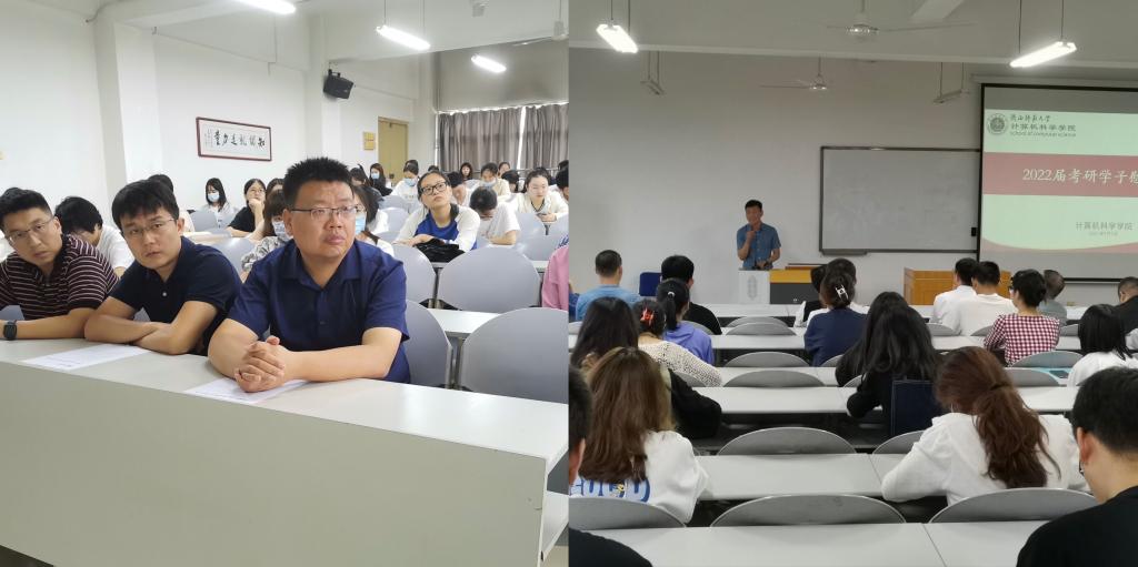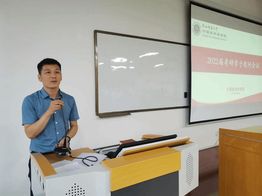 副院长马苗、李鹏、董春生从考研心态以及学院为同学们提供后勤保障方面进行鼓励和期望,班主任王涛、姚超以及辅导员为同学们鼓励加油并表达祝福,2020级优秀研究生代表分享了考研的经验与心得。