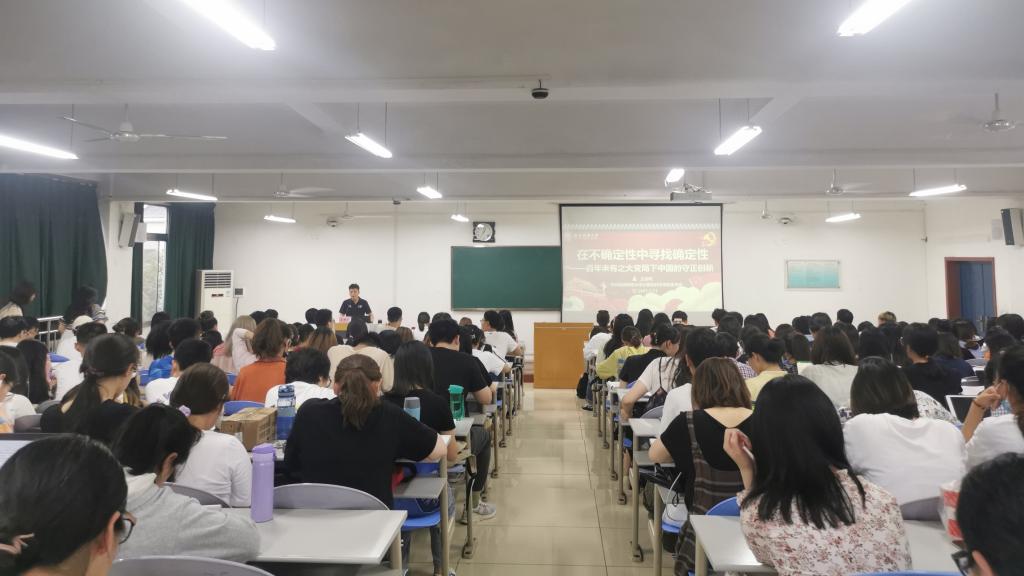 党委书记王耀明以“百年未有之大变局下中国的守正创新”为题,在文津楼1519教室为爱爱视频