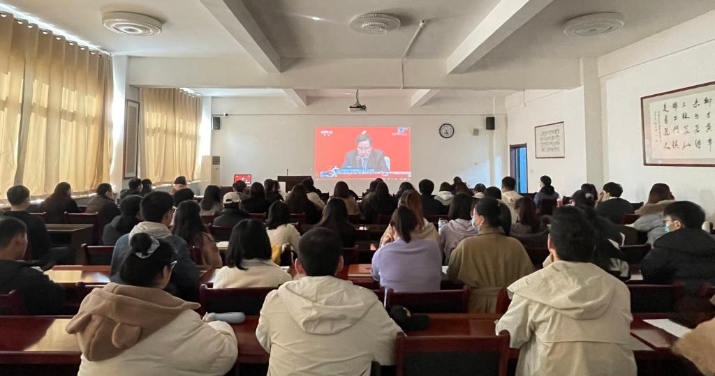 11月12日上午10时,中共中央就党的十九届六中全会精神举行新闻发布会。为深入学习党的十九届六中全会精神,传承红色基因、赓续红色血脉,深刻理解党的百年奋斗重大成就和历史经验,学院党委组织部分学生党员及学生干部于文津楼3412报告厅集中观看学习,学院党委书记王耀明、院长王小明、团委书记何文曦一同观看发布会直播。