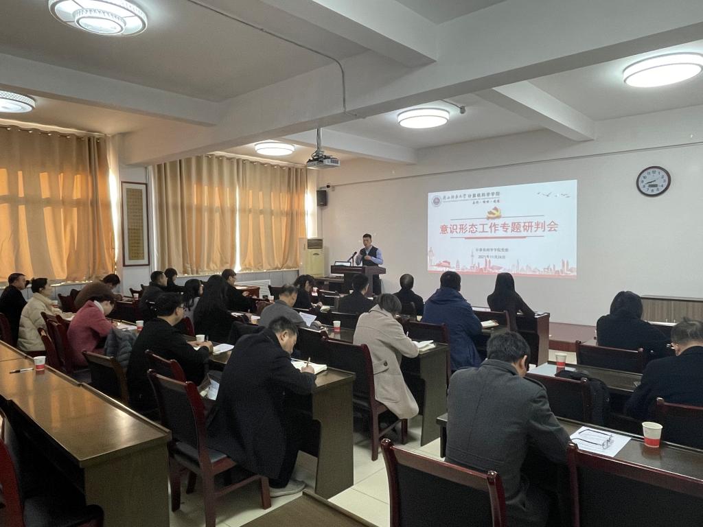 意识形态工作责任制实施办法》的修订情况,并对学院意识形态领域的风险点进行了分析研判。