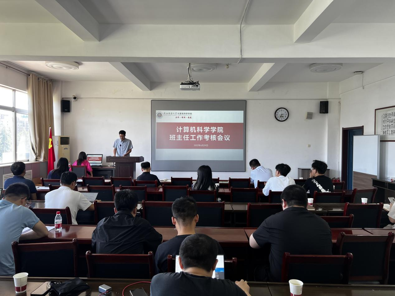 于文津楼3412报告厅举行2021-2022学年班主任工作考核会议。学院党委书记王耀明,副院长李鹏、董春生,学院教学秘书,各年级班主任、本科生辅导员及学生代表与会。会议由学院党委副书记郭康凌主持。