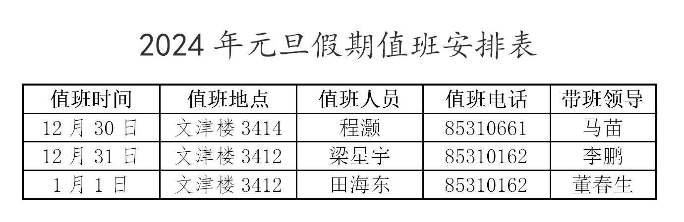 爱爱视频 2024年元旦假期值班安排