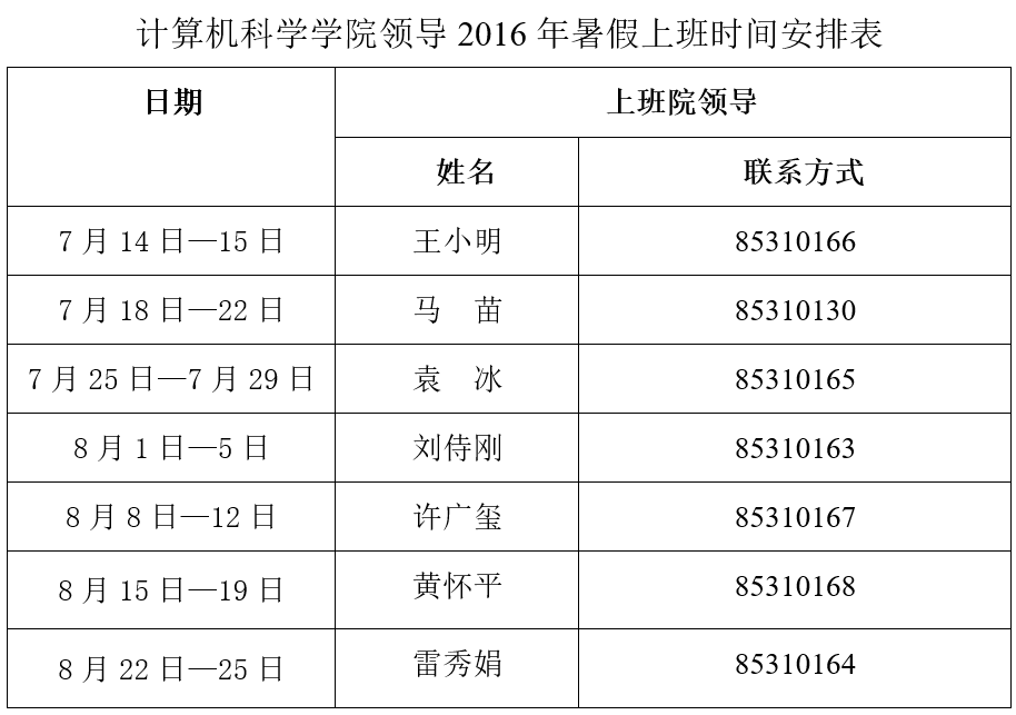 (三)坐班人员在保证各项工作正常运行的前提下,从7月14日(星期四)起由各单位安排轮流休息,8月26日(星期五)全体人员正式上班。