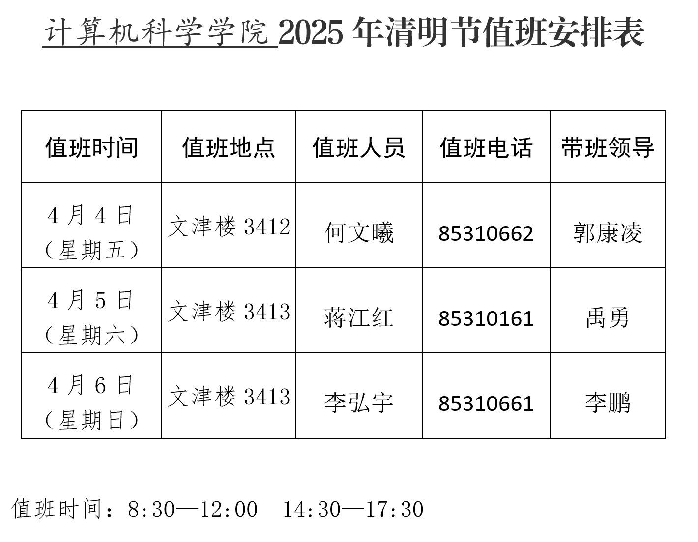 爱爱视频 2025年清明节假期值班安排