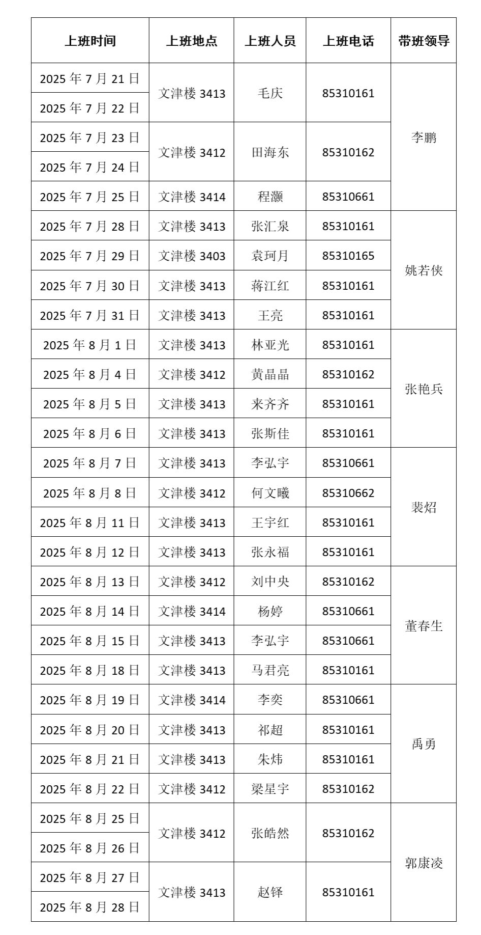 人工智能与计算机学院2025年暑期轮流上班安排表