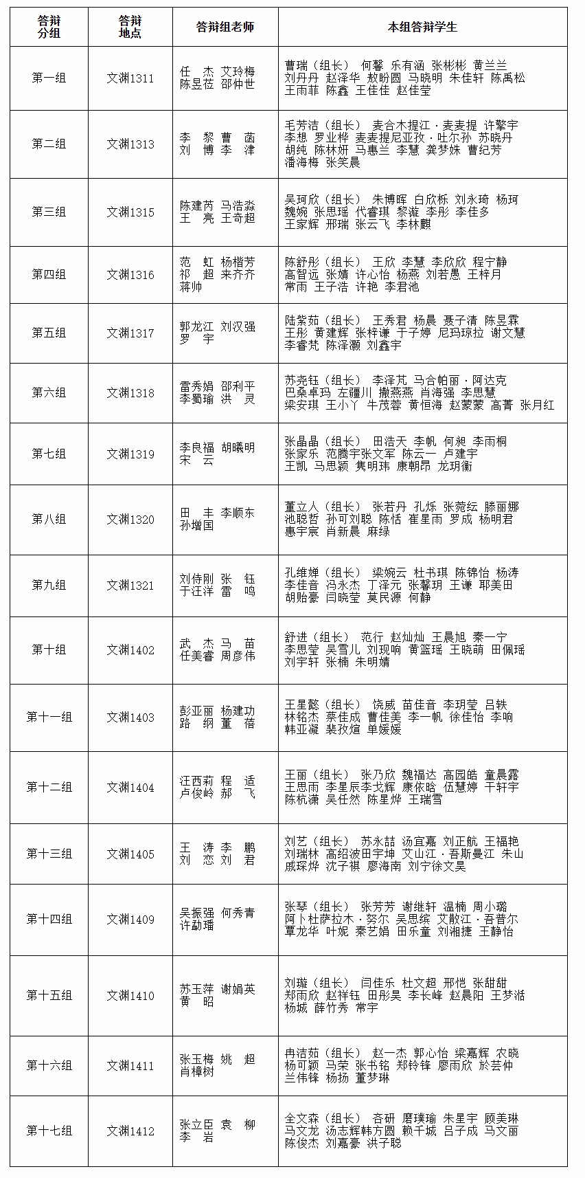 二、开题答辩分组及地点