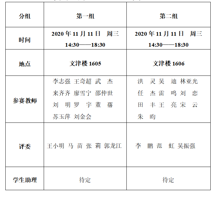 将于11月11日进行学院预赛,确定青年教师参赛名单,推荐其参加校级决赛。