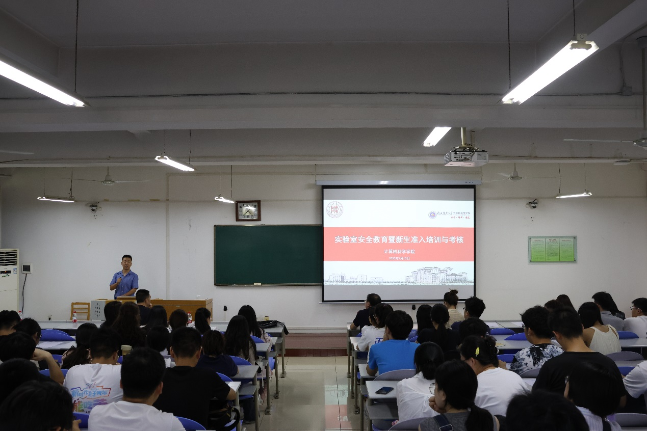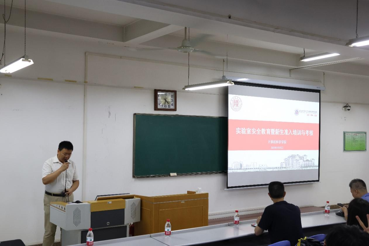 于9月15日下午在文津楼1620教室开展了2023级研究生新生实验室安全教育培训工作。西安市五进消防站教官晁奭昕、学院实验室主任张永福,实验室负责人蒋江红,人工智能实验室负责人张汇泉,研究生辅导员袁珂月及2023级全体研究生新生参加了本次培训,培训由副院长董春生主持。