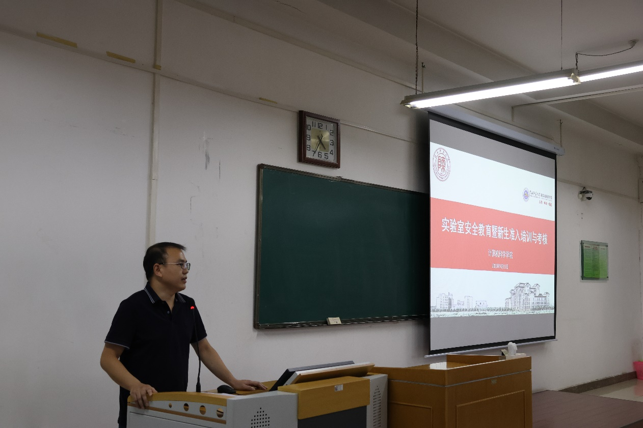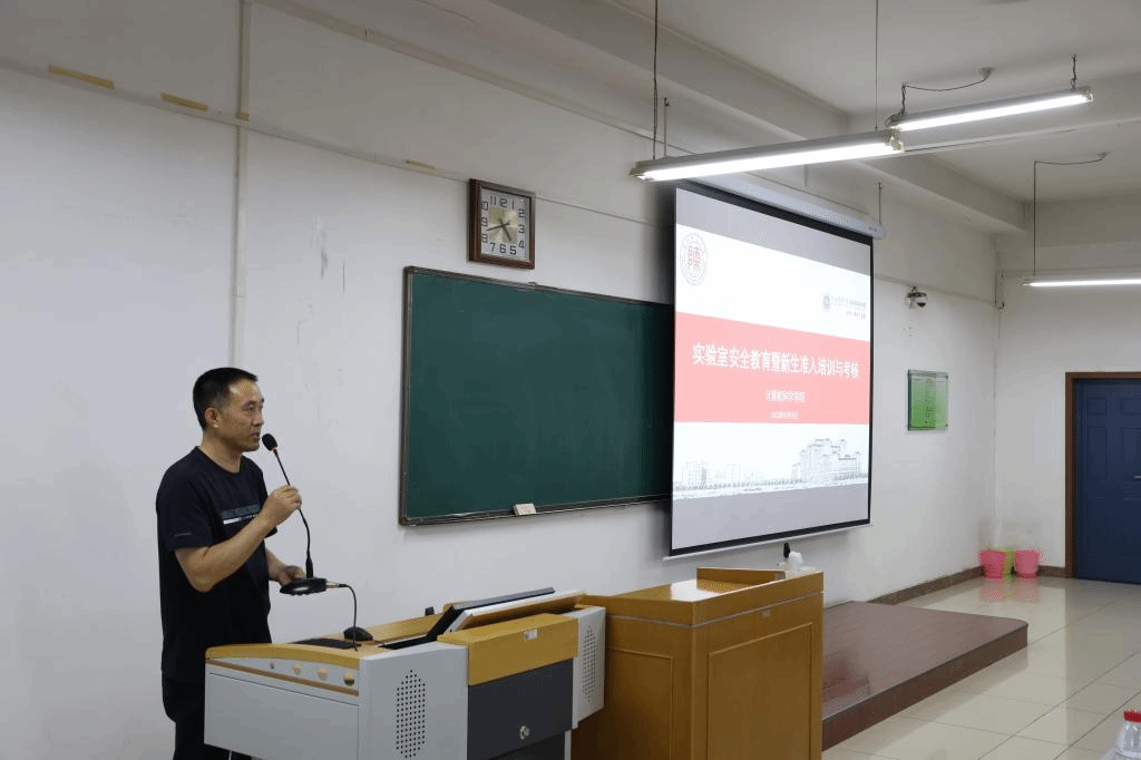 张汇泉以人工智能实验室为例,分享了集群实验室用电、运行等方面的安全注意事项,并提醒同学们在实验室的学习生活中一定要高度重视安全操作,保护好个人和他人的生命财产安全。