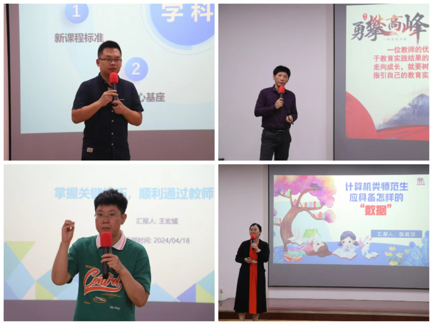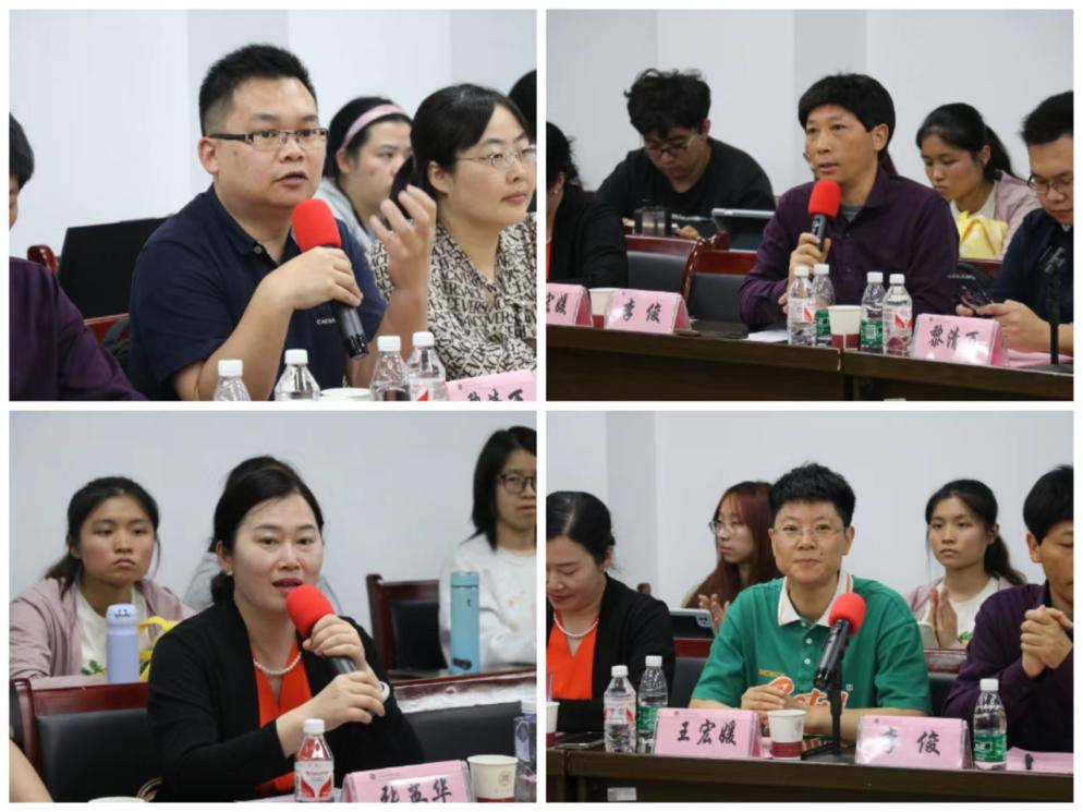 座谈会上,四位名师逐一进行了精彩分享。黎清万老师以“信息技术教师发展路径及师范生就业技能提升”为主题,从“学科、教师、素养”三个维度分享了自己在信息技术教育领域的丰富经验,鼓励同学们多参赛、多编程,打造自己的“个人亮点”;李俊老师围绕“信息技术学科教师如何实现价值”为主题进行了深入探讨,鼓励学生从“课程—空间—活动”三维联动模式促进教学效果提升,同时积极参加评比、比赛活动,提升自我价值;张英华老师着重讨论了“计算机类师范生应具备怎样的‘数据’”,强调了具备基本数据处理、分析等能力的重要性,更鼓励同学们探索自己的“成长数据”,成为胸有成竹、胸有大志的信息技术教师;王宏媛老师分享了“师范毕业生参加教师考试攻略”,为同学们提供了实用的考试攻略、应试策略和面试技巧等。