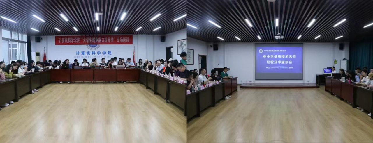 为更好助力2025届毕业生顺利步入职场,掌握就业形势,帮助同学们树立正确的实习观和就业观,增强就业竞争力,4月18日晚,学院于文津楼3425报告厅举办“大学生就业能力提升季”系列培训之中小学信息技术名师经验分享座谈会。学院优秀院友、东莞六中人工智能教育中心副主任黎清万、佛山顺德初级中学正高级教师李俊、佛山桂江小学副校长张英华、汕尾市教师发展中心王宏媛进行报告分享。学院副院长李鹏、党委副书记郭康凌、2025届全体公费师范生、教育类研究生及有志于从教的非师范生代表参会。会议由本科生辅导员刘中央主持。