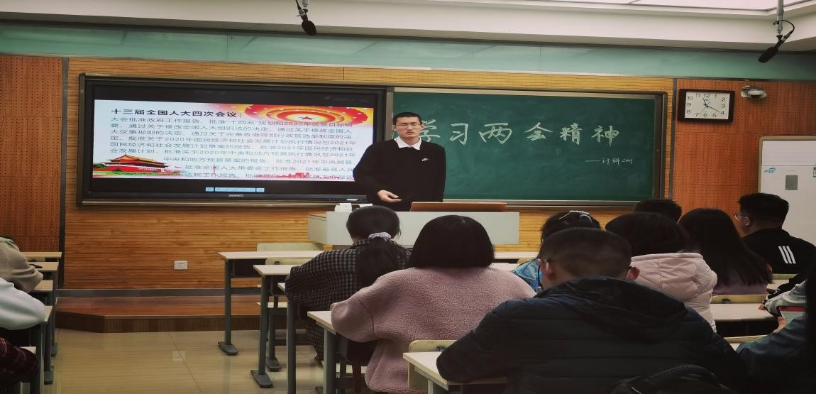 为紧跟时事热点,深入了解国家政策,聆听人民的声音、时代的声音,2020级计科一班于2021313日开展了主题为“学习两会精神”的团日活动。由团支部副书记、班长徐文昊同学组织,计科一班全体同学参与此次活动。