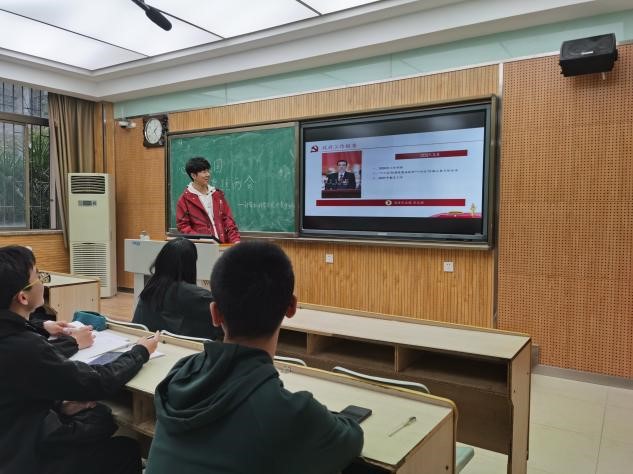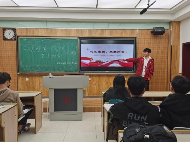 每一位同学认真了解两会,并从两会中得到启示,了解国情、了解社会变动、了解人民需求,更加懂得如何顺应时代的要求发展自己。活动开始前,同学们提前学习了相关内容,了解了两会的背景及意义。本次活动对继续加强青年大学习的效率和质量做了安排布置,了解了两会中的故事,几位同学提前准备了在两会中发生的“大思政课”,以故事的形式为同学们讲解,宣传委员利用qq、微信等平台进行了线上宣传。