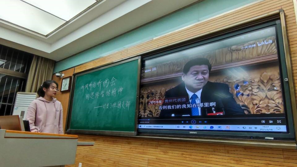 最后,同学们进行了积极地讨论,探讨自己对两会精神的理解,大家纷纷举手发言。张彬彬同学号召大家将两会精神付诸行动,将党中央的思想贯彻落实到实际的学习与生活中。