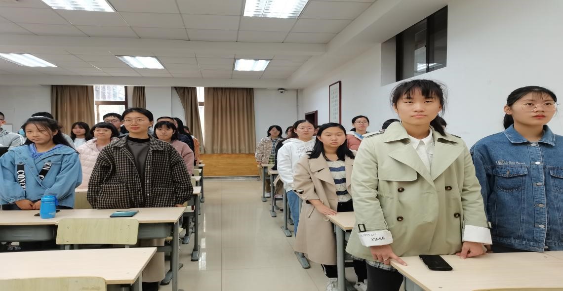 团日活动开始,徐文昊同学提议全体同学起立共唱国歌。在嘹亮的伴奏声中,同学们满含深情和敬意地齐唱国歌。