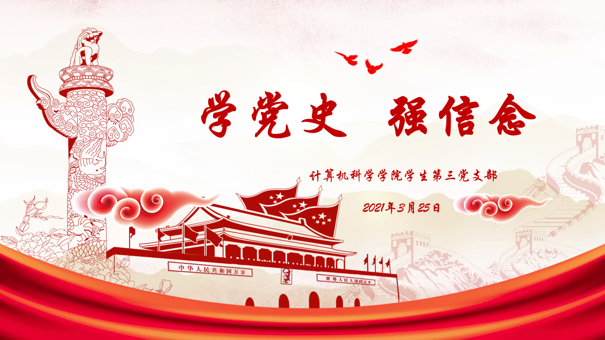 为深入学习贯彻习近平总书记在党史学习教育动员大会上的重要讲话精神,扎实开展党史学习教育,引导支部党员学史明理、学史增信、学史崇德、学史力行, 3月25日晚,学生第三党支部在文津楼3524室开展了“学党史 强信念”主题学习,会议由支部书记任仰主持,支部全体党员参会。