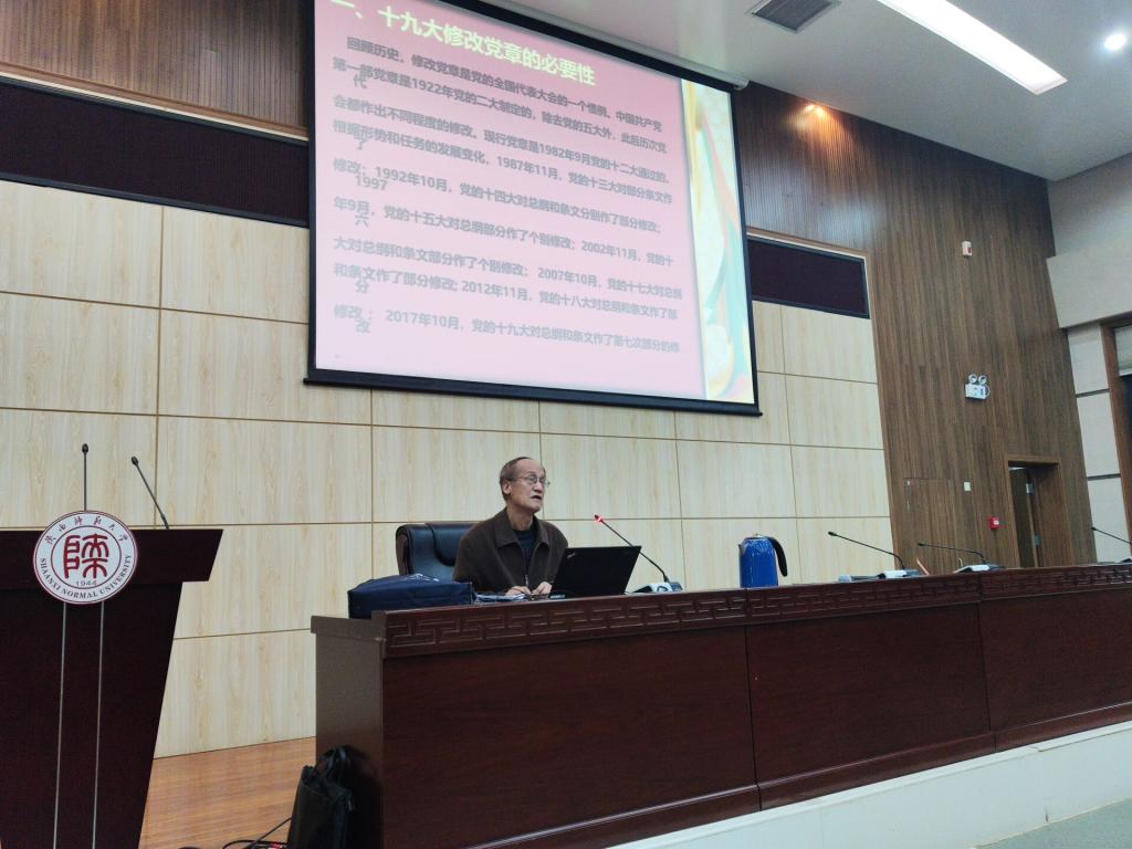 万老师谈到,党章是党的总章程,对坚持党的领导、加强党的建设具有根本性的规范和指导作用,他对十九大修改党章的原则及主要特点进行了介绍。随后,他讲述了十九大修改党章的六大亮点:新思想、四个自信、新目标、坚持以人民为中心,充实了加强党的建设的内容,坚持党对一切工作的领导。他通过列举多层次、多角度的生动实例,重点阐述了中国共产党的性质和宗旨。万老师强调,党的根本宗旨在于全心全意为人民服务,这也要求入党积极分子不仅要自己进步,同时也要带动身边同学一起进步,共同践行党全心全意为人民服务的宗旨。万老师衷心嘱托入党积极分子要牢记党的性质和党的宗旨,积极努力、付诸行动,力争早日成为一名光荣的共产党员。