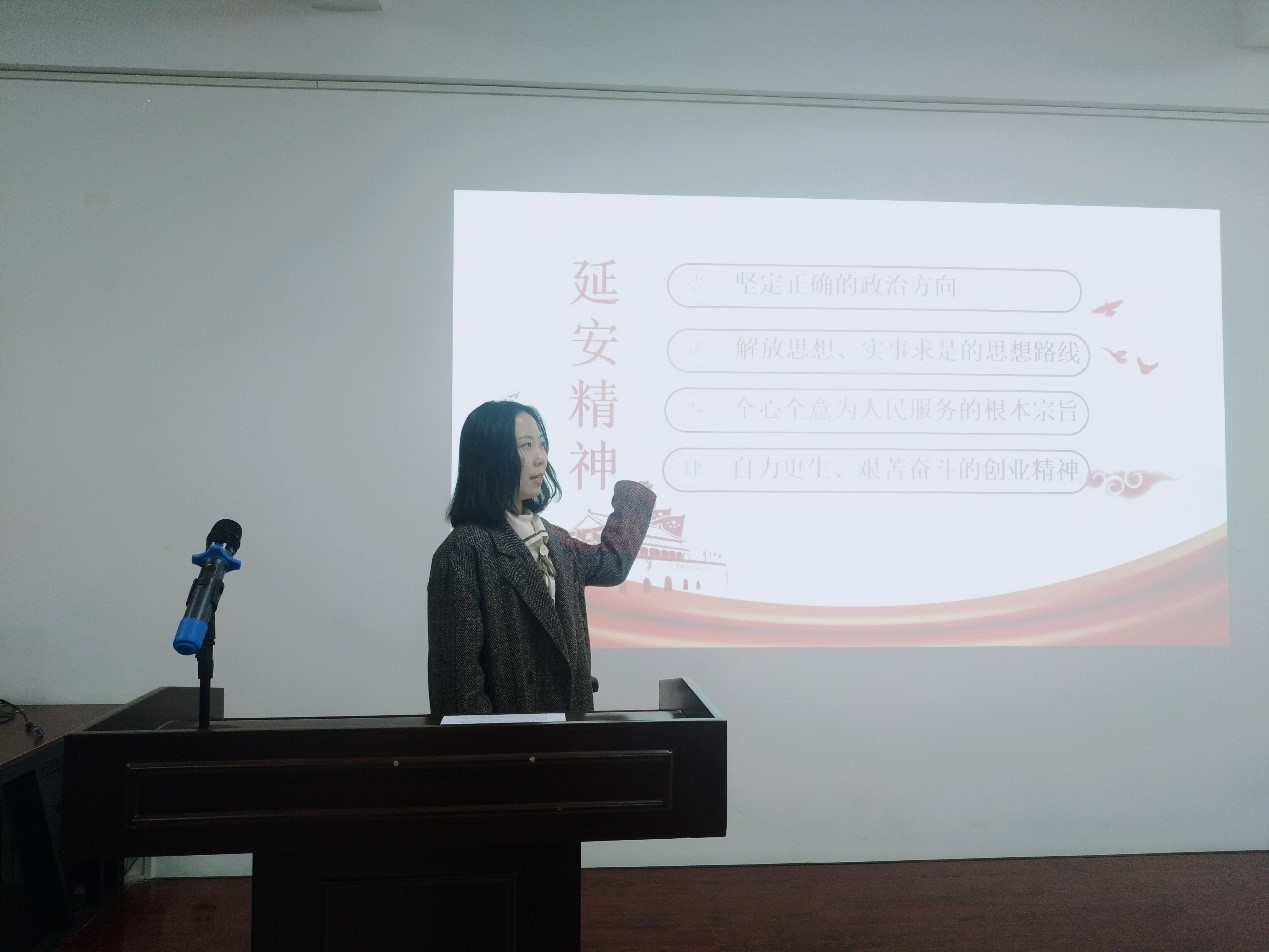 首先,支部书记任仰同志给大家上了一堂“延安精神”微党课。她从延安精神的主要内容和如何正确地理解和把握延安精神两个层面展开讲解,带领大家回顾了13年的延安时期中国共产党从小到大、由弱变强、从挫折到胜利的光辉历程,勉励大家认真学习延安精神,从延安精神中汲取信仰的力量、查找党性的差距、校准前进的方向。